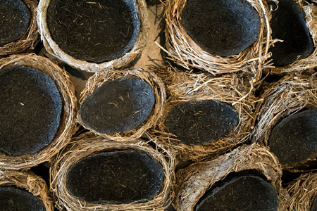 Dimensions: Table: 24 x 118 x 46 in, Boxes: variable (approximately 26 x 93 x 60 in.) Throughout the winter months over a period of ten years I collected a variety of abandoned bird's nests found in sloughs, riverbanks and the woodland of rural Alberta. When I displayed these nests for close examination I saw possibilities of how they could be used metaphorically to address issues of spreading urbanization into the agricultural land in the area where I live in southwest Edmonton. Preservation of farmland and growing urbanization is a global concern and I have become very aware of these changes to my own environment and almost everywhere I travel. Food supply is threatened and the plants, birds and animals of each of the newly assimilated sub-divisions are endangered. Although the nests are clearly a collection and recognizable as prairie based, I wanted to overlay the association of the geography in which I spent my formative years. I was able to combine memories of growing up and exploring seashore tidal pools in Australia with my present day existence in the flat lands of Alberta. The table combines a representation of the birds of Alberta and the tidal pools of my youth. The second component is used to suggest an aerial view of urbanized sprawl as it continually replaces active farmland. The small forms nestled into the repetitive boxes, symbolize the containment and constraint of human existence within this urban environment. Our disregard for the natural world is monumental. Lyndal Osborne | ||||||||||||||||||